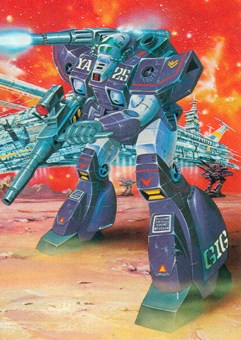 This un-named mecha appeared in the background of some artwork produced for Imai's Megaro Zamac model range. The artwork appeared on a small promotional leaflet included in some of their kits where the image of this mecha was only around 8mm high, so it didn't give me much more than a basic shape to work from.